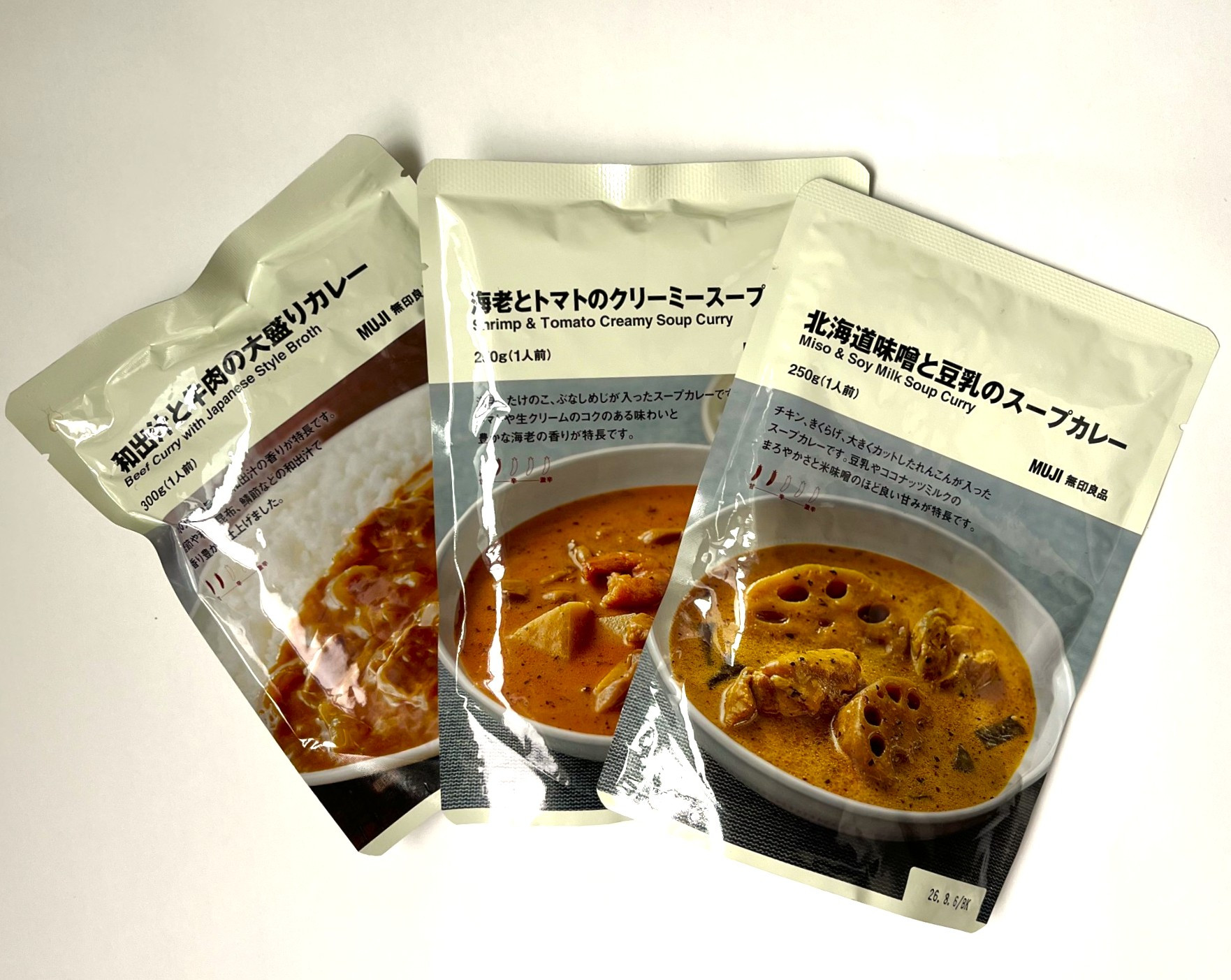 ということで、どれも食べてみると“自分で再現するのはかなり大変そう”な凝ったカレー3種。これが1コイン以下で買えるというのは、「無印ってやっぱりすごいなぁ」と実感します。どれも辛さ控えめ、そしてゴハンがもりもり進む美味しさでした!