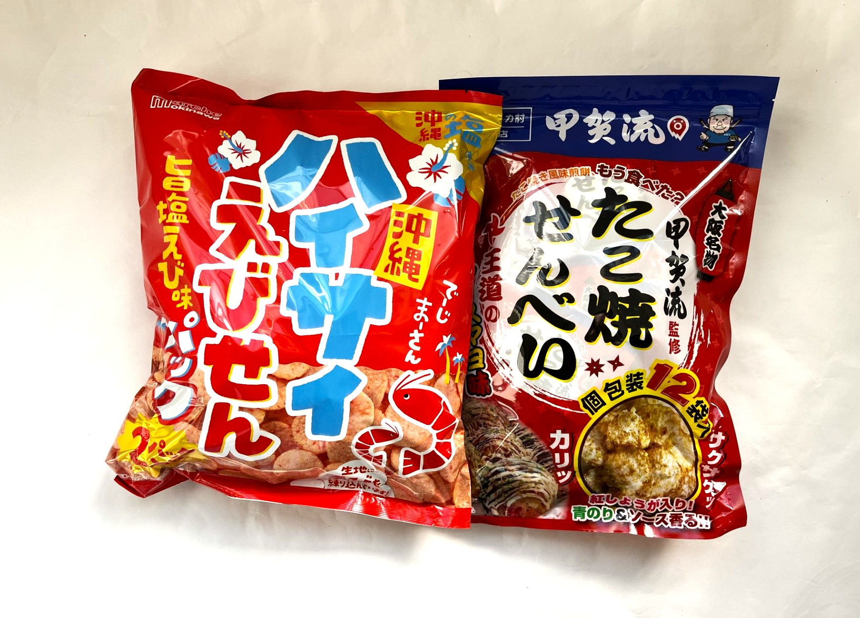 『コストコ』といえば、とにかく大容量という印象が強いですが、売り場でフラフラ見ていたときに「あっ、これ超美味しいから~」とギャルがハイテンションで話していて、「それは気になる……」と思って購入したのが「沖縄 ハイサイえびせん」。そして、これと一緒に同じくらい大きな袋の「たこ焼きせんべい」も購入。2つの“粉もんスナック”を食べ比べてみることにしました!